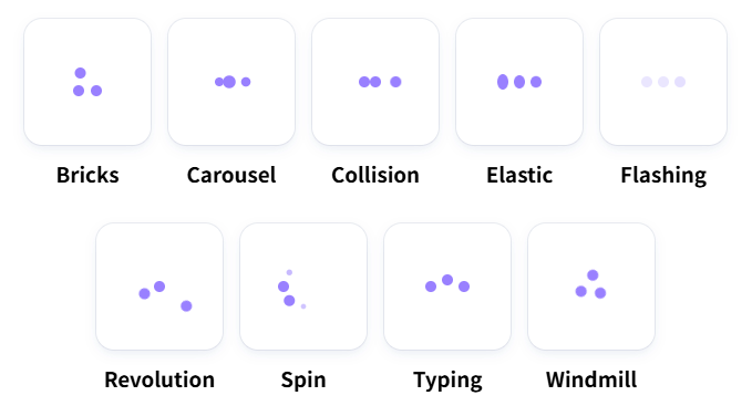라이브러리는 총 9개의 애니메이션을 제공하고 있습니다. 다른 애니메이션도 모두 동일한 방법으로 사용합니다.